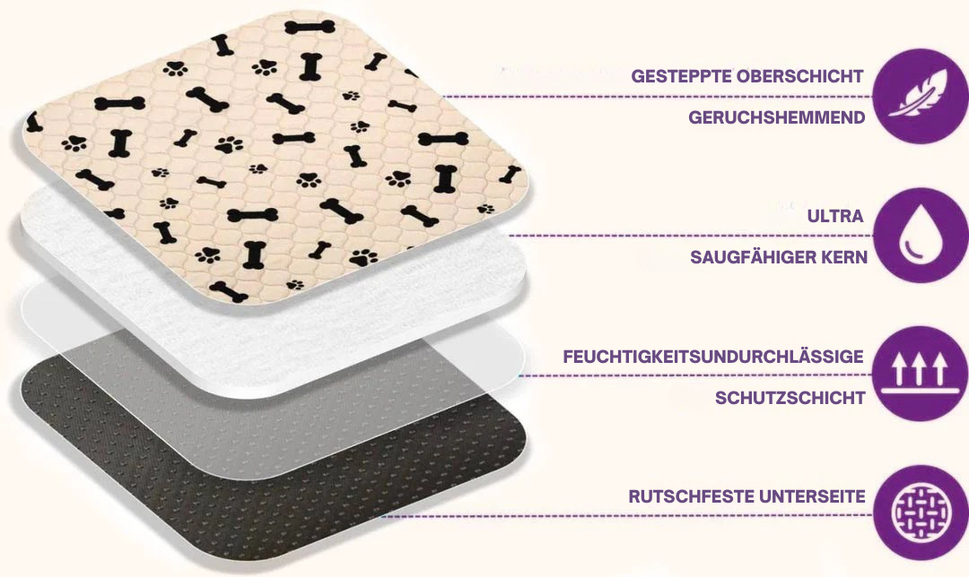 Hygienische, saugfähige und waschbare Hundematte für Hunde und Welpen